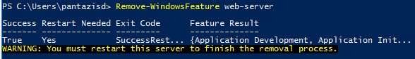 As a last step, I will show you what happens if IIS gets uninstalled from the server. First, let’s remove the role using Windows PowerShell